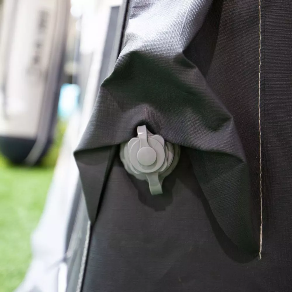 Durch das einfache Aufblassystem lässt sich das Wohnwagenvorzelt mit der mitgelieferten Luftpumpe in nur wenigen Minuten vollständig aufblasen. Die abgerundete Dachform verhindert, dass sich Wassersäcke auf dem Vorzeltdach bilden und reduziert somit ein Durchängen des Daches. Das komplette StarCamp Wohnwagenvorzelt ist aus dem robustem KlimaTex Material hergestellt und deshalb ideal für Reisecamping. Es ist dadurch sehr leicht und perfekt für Vielreisende, wenn das Vorzelt mehrmals im Jahr auf- und abgebaut wird.