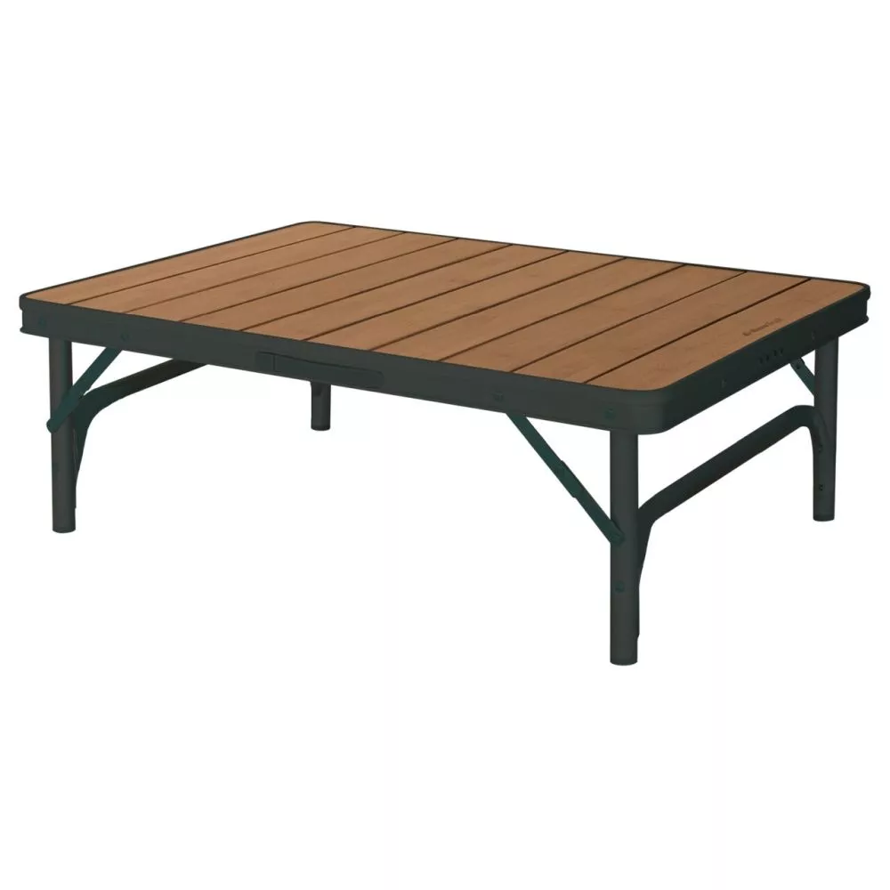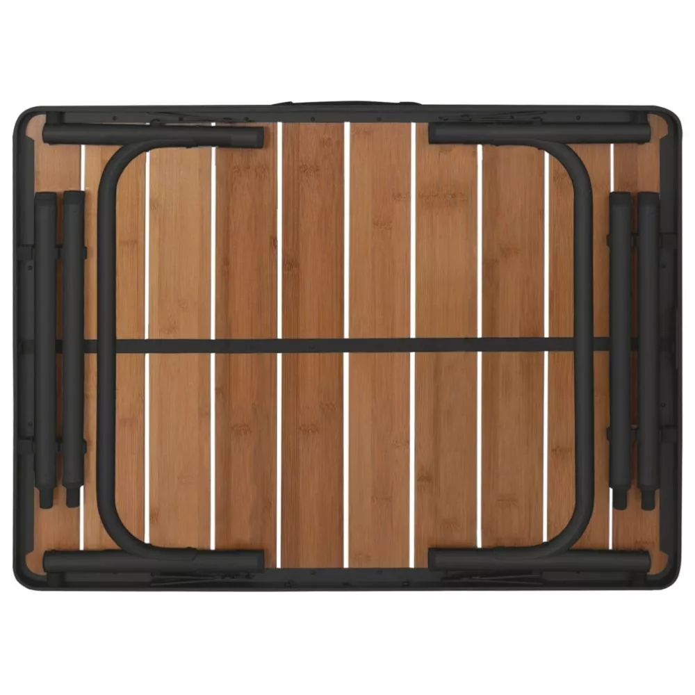 Der Camping-Klapptisch Charelle von Eurotrail mit einem stabilen Aluminiumrahmen und einer wasserfesten Bambus-Tischplatte ist auf 2 Höhen einstellbar.