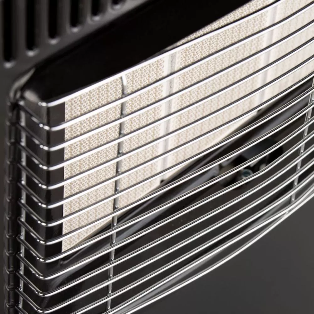 Beim Vulkana Infrarotofen wirkt ein perforiertes Keramikbrennfeld als Katalysator. Hinter diesem Katalysator verbirgt sich ein Metallreflektor, der die Verbrennungswärme nach vorne wirft. Der Vorteil: Der Infrarotofen kann mit seinen 4.200 Watt in kürzester Zeit einen bestimmten Bereich eines Raumes erwärmen. Die Wärme wird per Wärmestrahlung übertragen und so ist diese Art zu Heizen angenehmer für z.B. Allergiker, da kein Hausstaub durch Luftzirkulation aufgewirbelt wird.