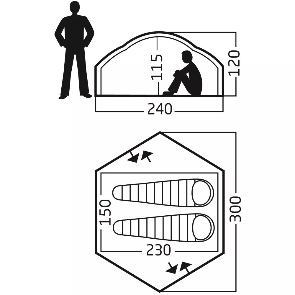 Auf beiden Seiten befindet sich eine Apsis, bzw. ein Eingang. Das Trekkingzelt bietet dadurch viel Stauraum, eine gute Luftzirkulation und Platz zum Kochen bei schlechtem Wetter. Ein weiterer Vorteil von zwei Eingängen ist, dass man seinen Zeltnachbarn nicht wecken muss, wenn man nachts einmal raus muss.
